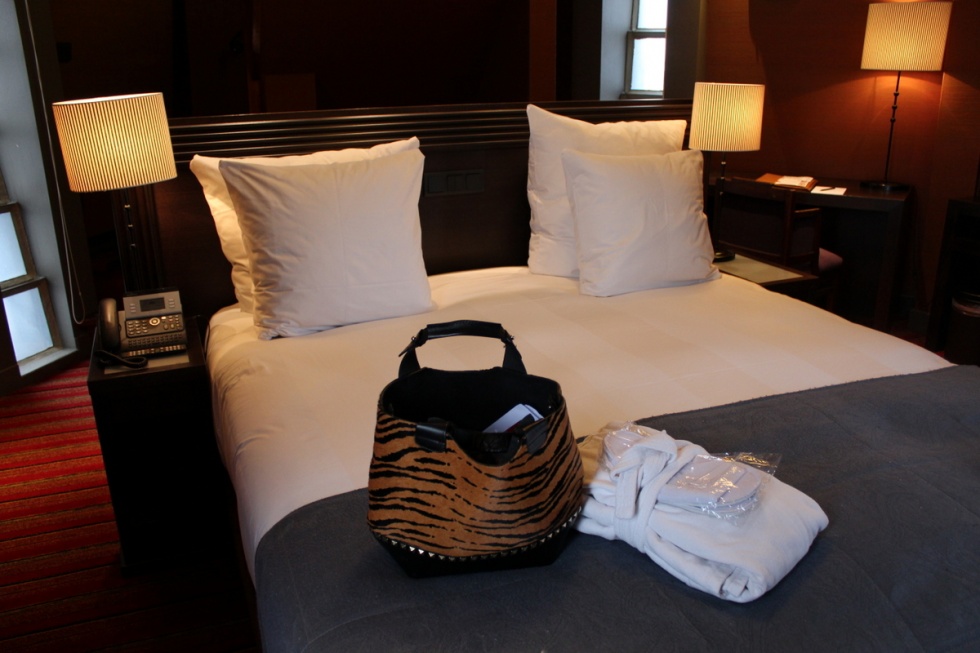 Jag landade i Amsterdam runt halv nio och har precis gjort mig hemma på hotellet. Jag bor på Grand Hotel Amrath och har fått ett torn på tre våningar. Lyx!