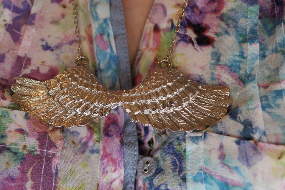 Idag hade jag på mig ett av mina favorithalsband, det kommer från Rachel Leigh och jag älskar vingarna. Jag har haft halsbandet i många år och trots flitigt användande är det fortfarande som nytt.