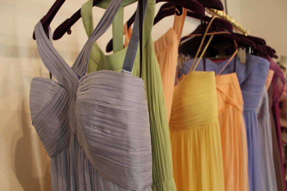 Idag besökte jag, Elaine, Denise, Bella och Angielina By Malinas showroom på Nybrogatan för att prova tärnklänningar. Vi kommer att ha på oss vackra svepande klänningar i pasteller, kommer att bli så vackert!