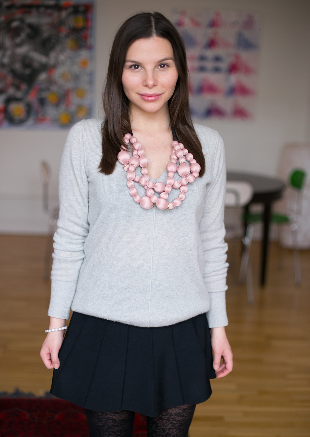 Idag invigde jag mitt halsband från Hanna Altmann, det är handgjort i silke och jag gillar de diskreta gulddetaljerna. Grått och rosa tillhör förresten mina favoritkombinationer!