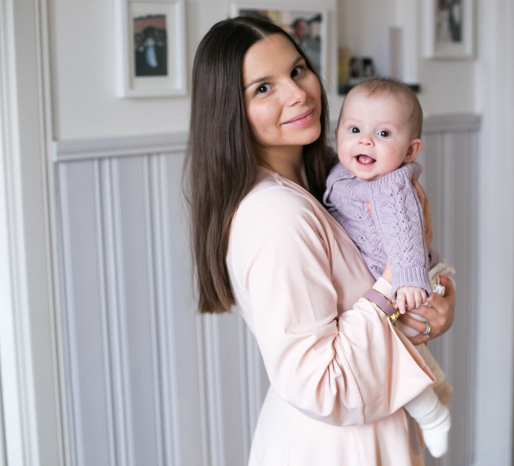 Idag har jag på mig en klänning från Asos och armband från Alexander McQueen. Alma har på sig byxor från Newbie och en stickad kofta (hur söt!) från Noa Noa.